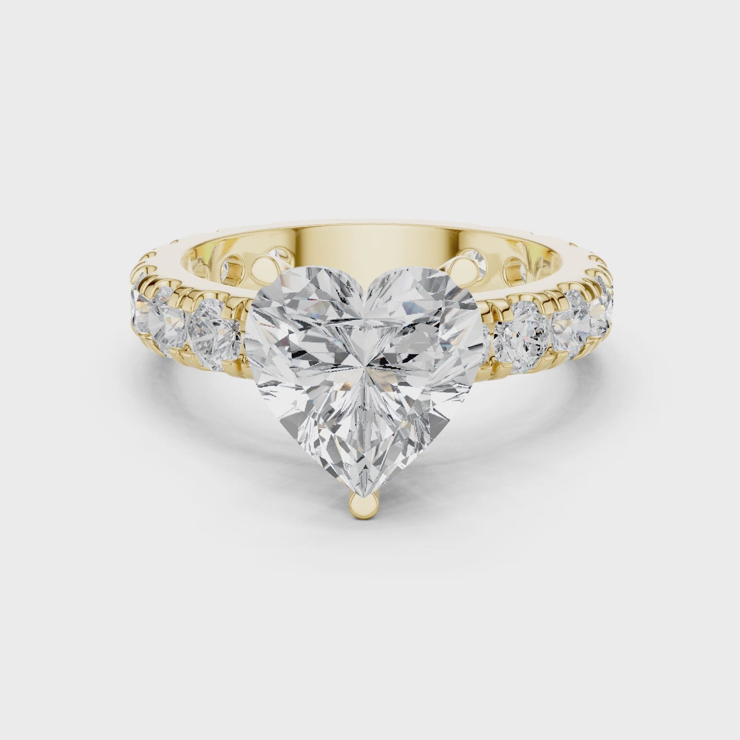 Celebrate love in its purest form with the Heart of Eternity. Featuring a dazzling heart-cut diamond set on a pavé band, this ring radiates passion, devotion, and timeless elegance. Each shimmering facet reflects the promise of forever, making it the ultimate symbol of romance. Whether chosen for a proposal, anniversary, or cherished gift, this ring embodies the eternal bond of two hearts united.